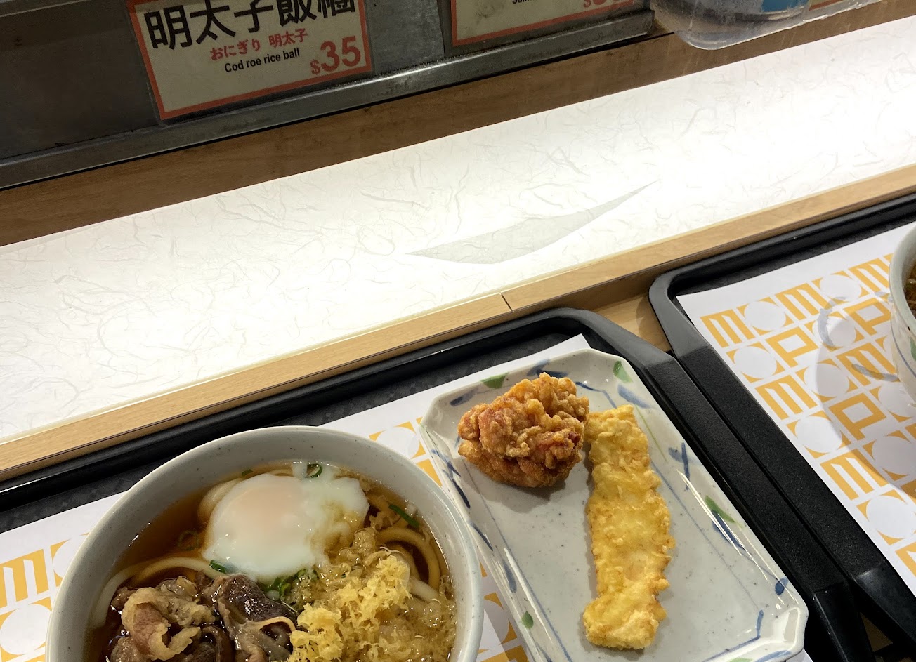 半自助式,牛肉月見烏龍麵湯頭好喝,麵條Q,有彈性,牛肉應該是牛丼的牛肉,還不錯吃,炸雞有點乾,但調味不錯