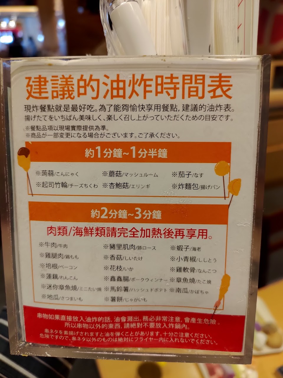 不然就是食材串好,都放在上面15-20分鐘(可能更久)不拿下來補貨,需要我們自己詢問店員可不可以拿!