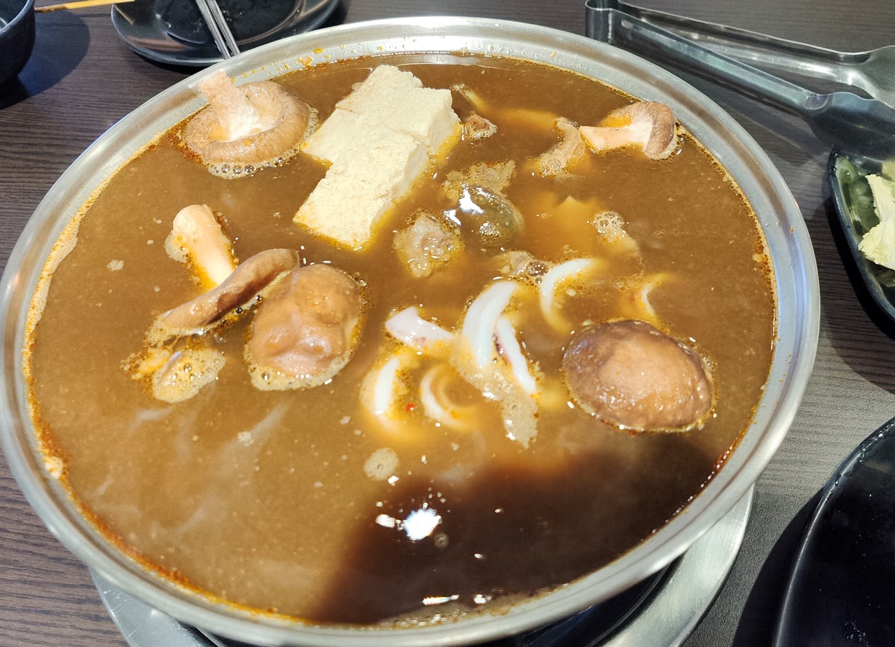 第一次來吃,剛開幕所以沒有很多人。 能吃到很開心,真的很好吃,業者也不怕你吃,羊肉大塊吃的很飽。 最愛羊大骨,湯頭也很夠味,蘸上醬料好食。 青菜種類多,還有4種羊肉片。 甜點,水果。我還喝很多的阿薩姆奶茶好好喝。