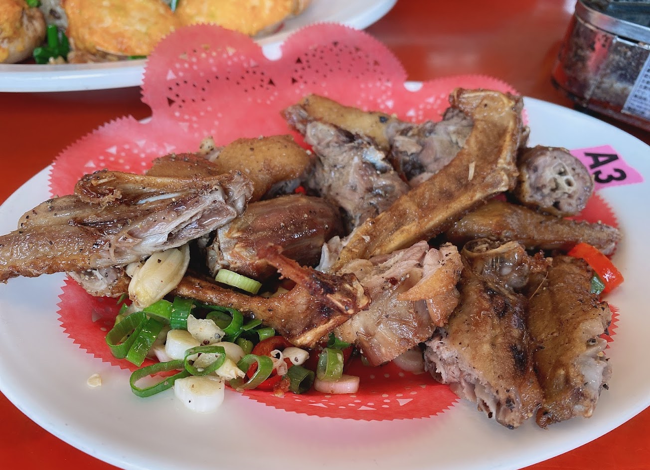 老闆招待的鴨血跟炸鴨,看起來很不起眼,但品質都很不錯,鹹酥鴨咬就骨肉分離。