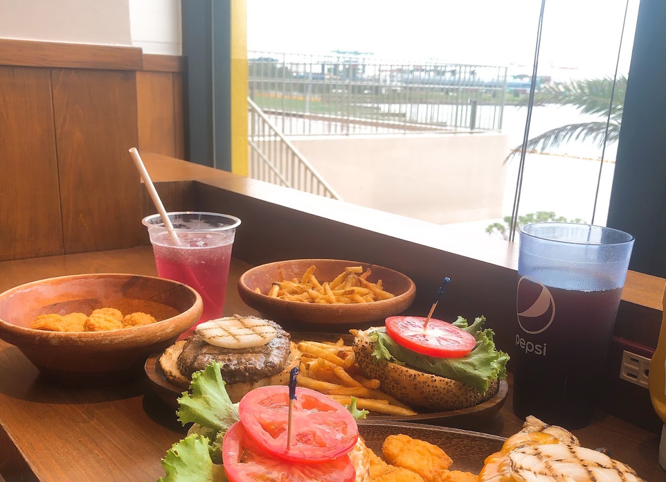 2020.08晚餐(平日) 雙人套餐$680元,含2份主餐與2份飲料、1份綜合洋蔥圈與1份沙拉。以份量與餐點品質來說很值得。靠窗觀景,悠閒舒適的環境更是加分。 漢堡選擇凱撒麵包,口感很好,加上亮點-煎得多汁有肉脂香氣的牛肉,構成令人開心的味覺體驗。雞肉三明治的調味也十分滿意。 餐點很棒,大力推薦!