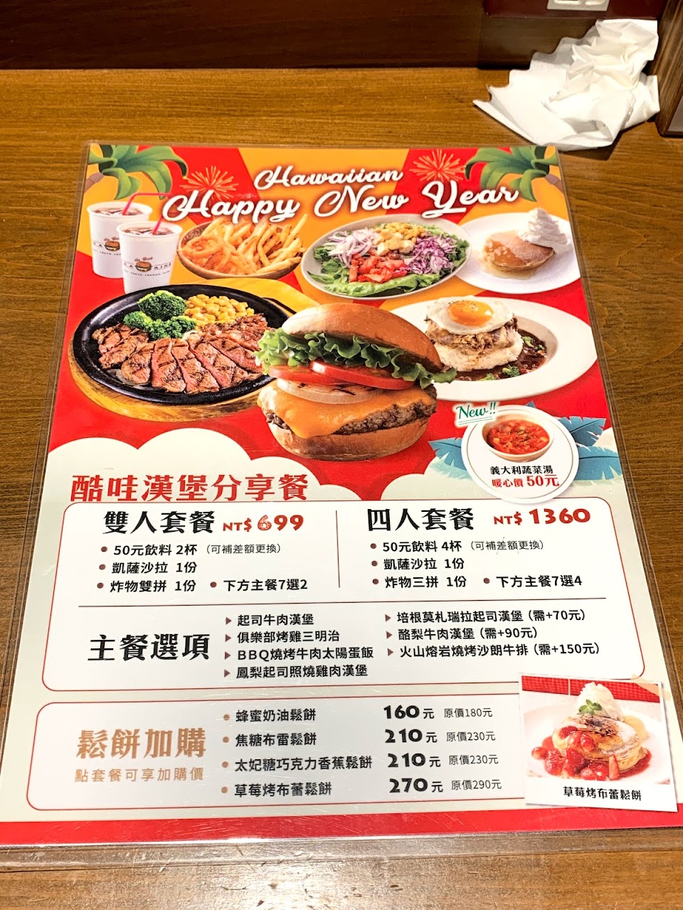 夏威夷來的漢堡餐廳,駱梨漢堡別具特色,漢堡排肉都蠻扎實的,不像一般漢堡排加了很多有的沒的,薯條很細但好吃,沙朗牛排意外好吃,可比下很多間名店,不想吃漢堡的也有飯類可選擇,不吃牛肉的,也有雞肉腿排可點,漢堡的起士、麵包也可選擇,飯後甜點建議必點鬆餅,很美味且不會太甜,客單價300~500元即可吃飽,店內附洗手台,飲料可續杯,後面靠窗還有海景可欣賞,店內座位沒有很多,假日白天來須排隊喔!餐點不貴,值得到此一吃!