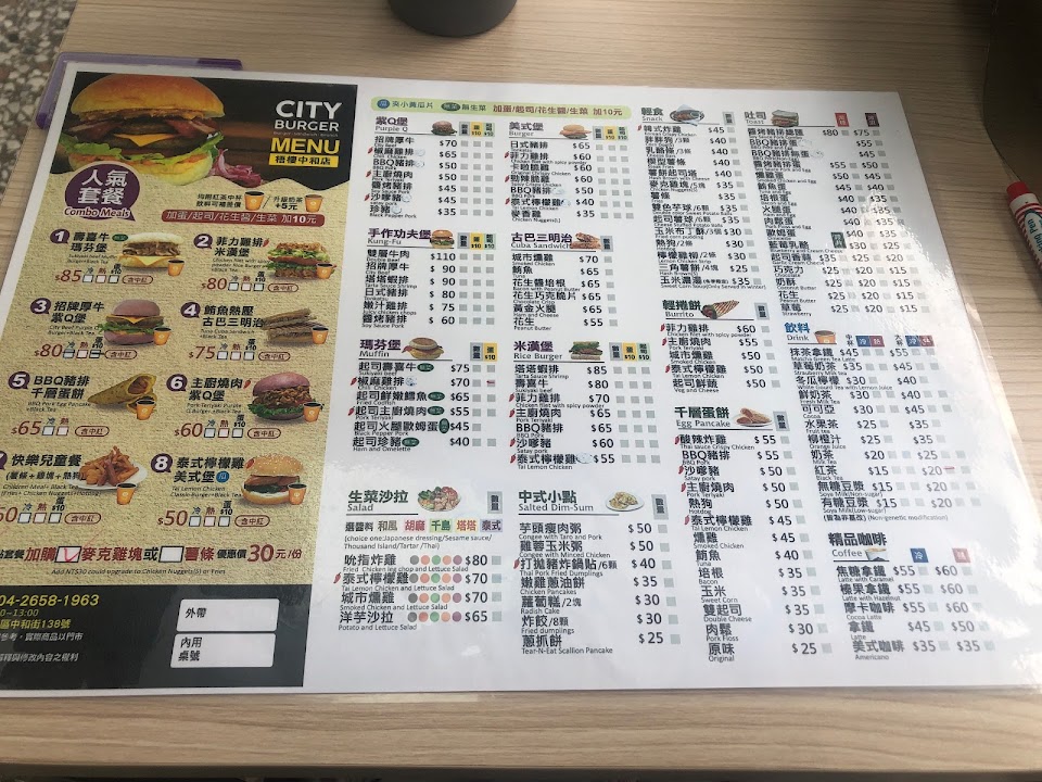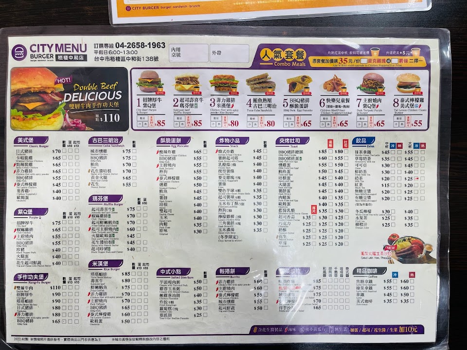 2024最新在地推薦餐廳的菜單_城市漢堡 – 台中梧棲中和店的菜單、圖片