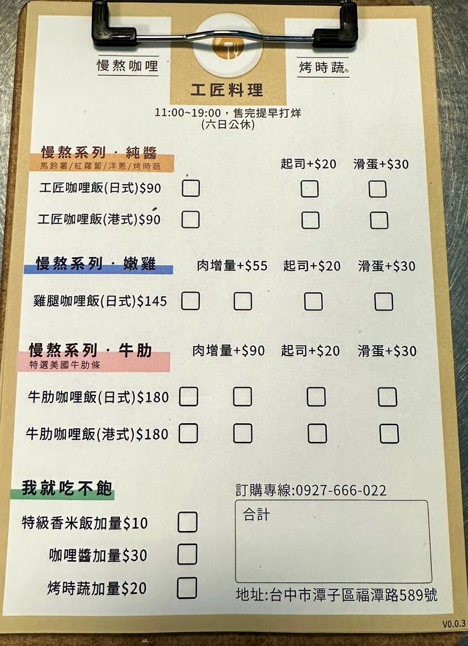 2024最新在地推薦餐廳的菜單_工匠料理 慢熬咖哩x烤時蔬的菜單、圖片