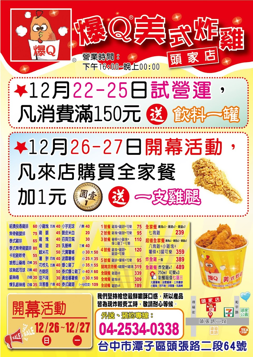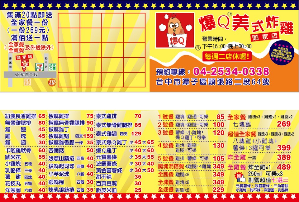 2024最新在地推薦餐廳的菜單_爆Q美式炸雞頭家店宵夜美食晚餐下午茶的菜單、圖片