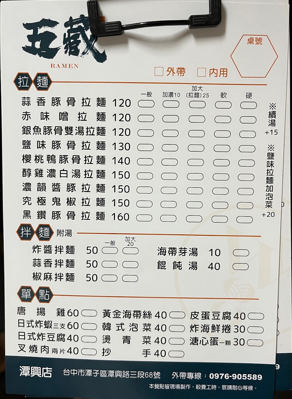 2024最新在地推薦餐廳的菜單_五藏拉麵-潭興店的菜單、圖片