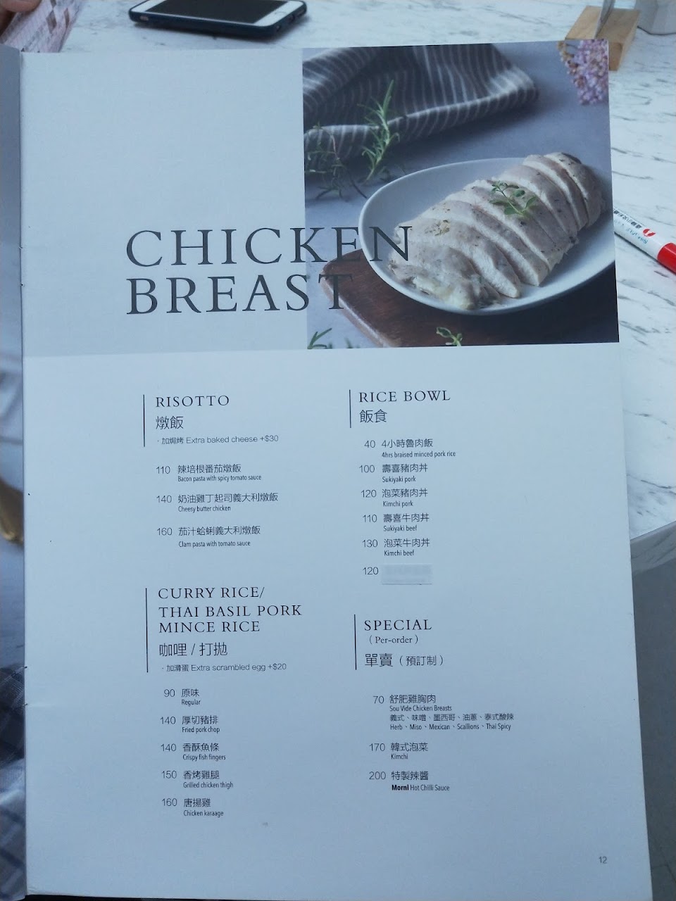 餐點部分,蘑菇麵怎麼沒有蘑菇呢?蔬菜比其他店家多了些半熟的新鮮洋蔥,不過醬汁味道太淡,吃兩口逐漸沒有味道,我擠了兩次番茄醬,和一點辣醬,辣醬味道不錯,辣度高要斟酌加,雞胸肉點餐時沒了,吃完蘑菇麵出店門口還覺得餓,同行家人點了泡菜豬肉飯,他說味道普通,吃了大概半飽;櫃檯前會擺上先做好的三明治,口味選擇很多很方便;大雞排飯套餐沒有供應了真可惜