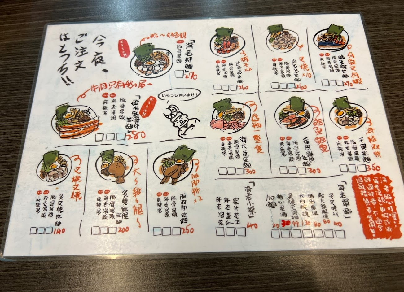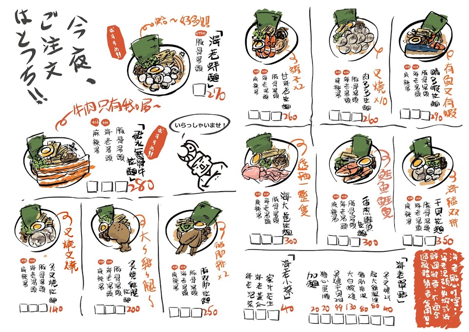 拉麵?口味種類甚多,點了海大卷、肉多多、飛水牛三種拉麵???! …