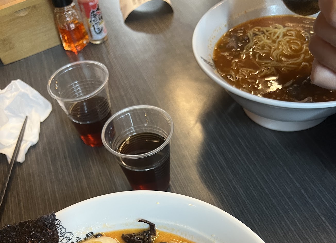 以一碗兩百左右的拉麵來說,算是表現很不錯,湯頭濃郁,麵條也算Q彈,叉燒或是烤雞腿都是很入味,可見在主菜上有下足功夫,外帶會額外把主菜跟麵裝在紙盒裡,湯頭放在紙碗裡,算是蠻用心的。