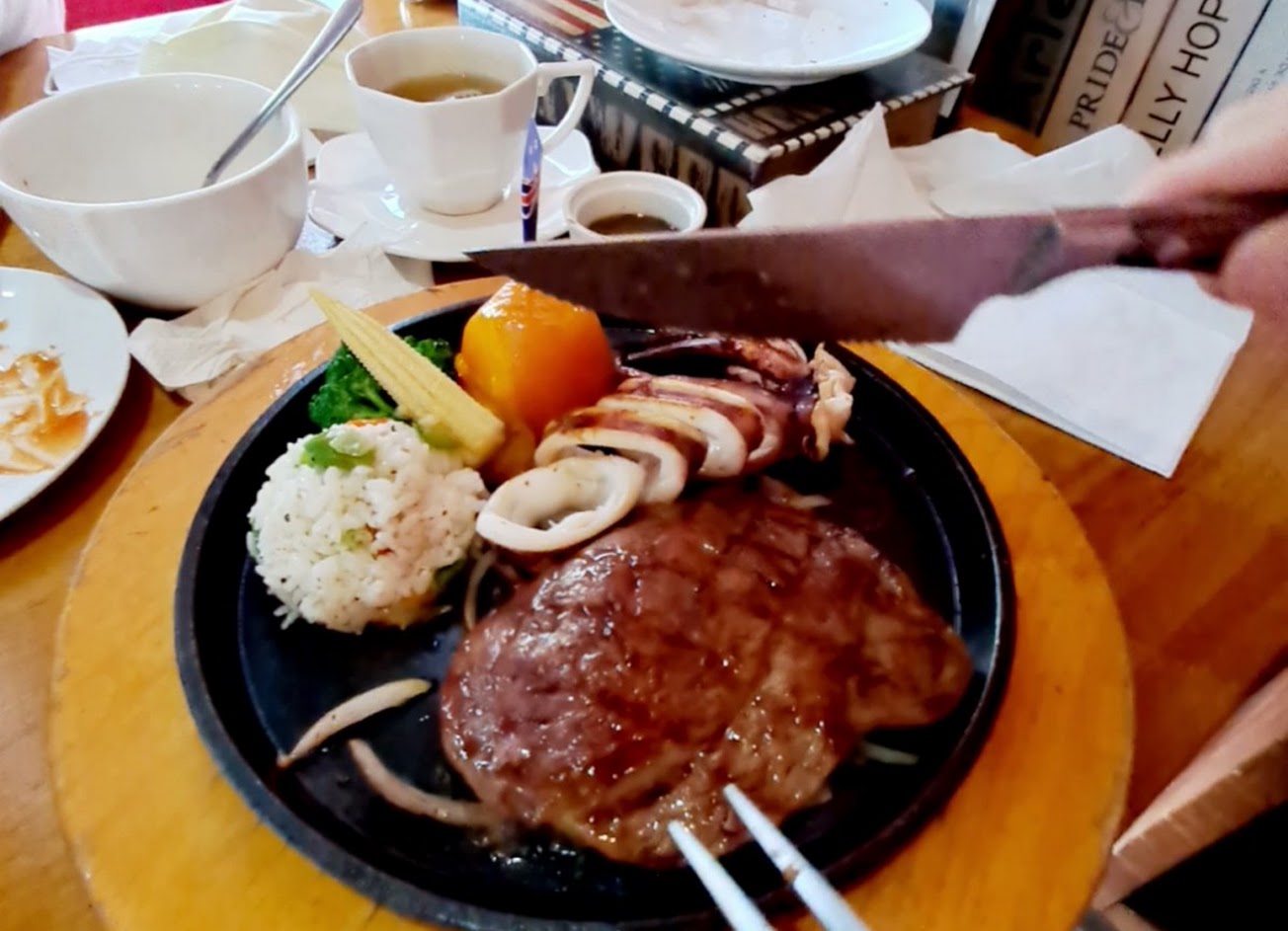 全店最值得點的就是老闆娘跟羅宋湯 刀叉也很給力 (我想是因為牛肉很老必須要用好的器具)(我的真牛皮皮帶可能肉質都比這塊肉細嫩…)(總之 吃這個不如吃阿瘦拖鞋?