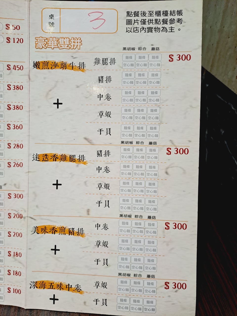 奶油濃湯的奶油要攪拌均勻 不然吃到一塊一塊的奶油還蠻噁心的喔! 中卷跟鐵板麵吃起來都可以 但是有點重鹹喔
