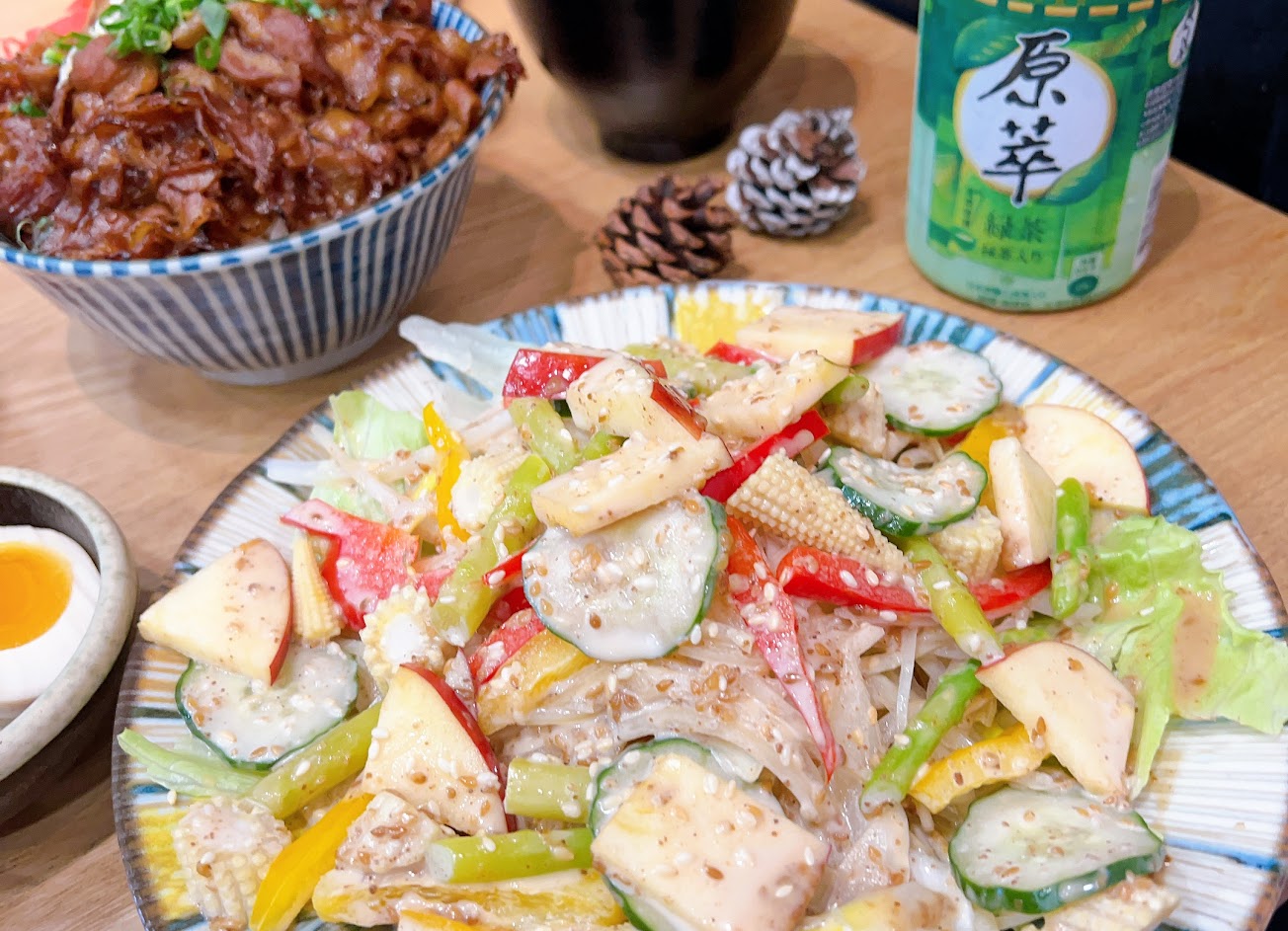 ✔️炙燒雪花豚丼滿盛肉山 $180 ✔️安格斯牛排丼 $270 ✔️野菜沙拉 $100 ✔️和風洋蔥 $50 ✔️職人手作泡菜 $50 ✔️梅汁紅蘿蔔球 $50 ✔️溫泉蛋 $30 ✔️溏心蛋 $30
