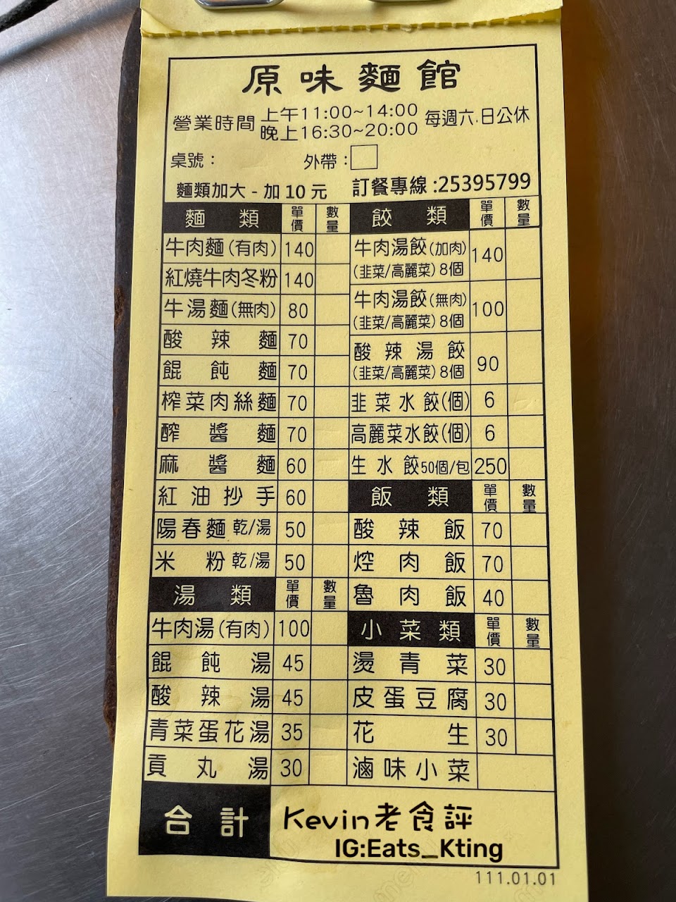 2024最新在地推薦餐廳的菜單_原味麵館的菜單、圖片