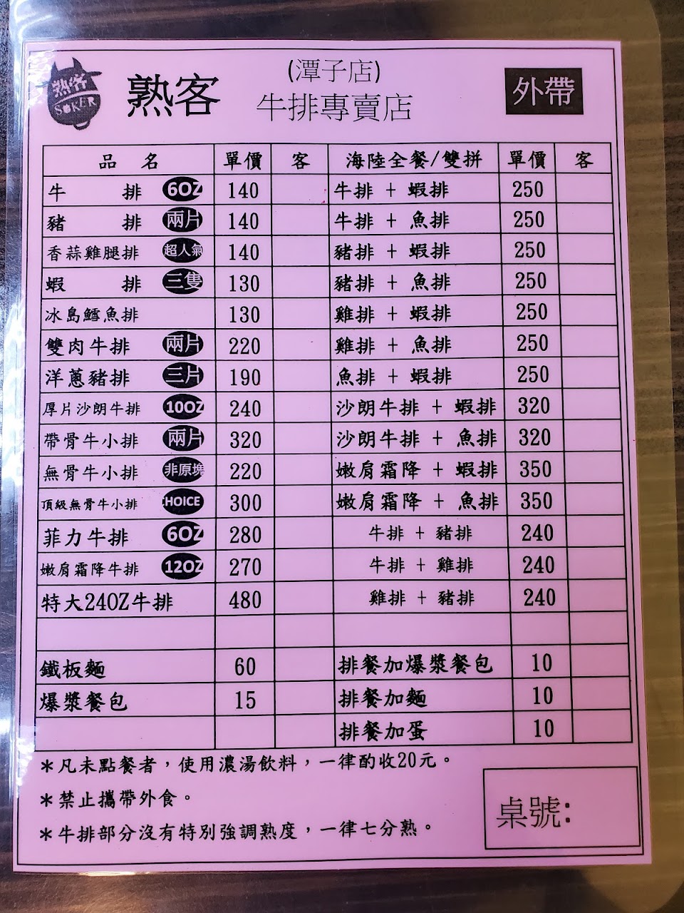 2024最新在地推薦餐廳的菜單_熟客牛排潭子店的菜單、圖片