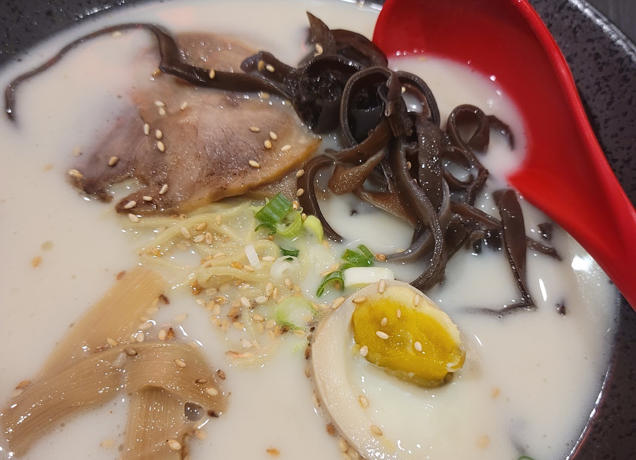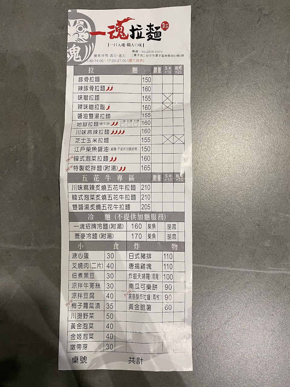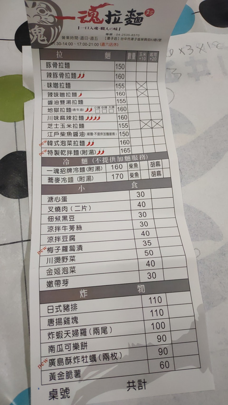 在潭子區真的找不到好吃的拉麵了,吃來吃去還是一魂好吃,點了一份豚骨跟辣豚骨,湯頭濃郁,辣豚骨也是我喜歡的,喝一口嘴裡馬上感受到辛的那種辣感,不會到不舒服,越喝越有感覺,也不油,還都會附半顆糖心蛋(有買過其他間都沒附),外帶包裝設計也很棒,同一個碗使用的蓋子夾層中放麵放配料,回家要吃再倒入,麵條既不會爛湯也不會被麵吸光,如果麵條可以再稍微粗一點就更完美了,可能我比較喜歡有口感一點的麵。