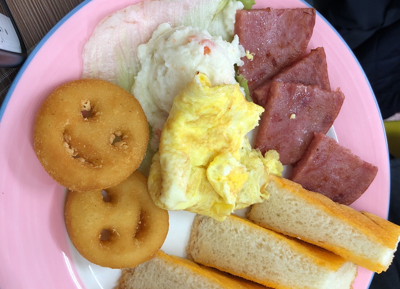 美味,我最喜歡 A 餐的肉類、麵包,還有鮮奶茶