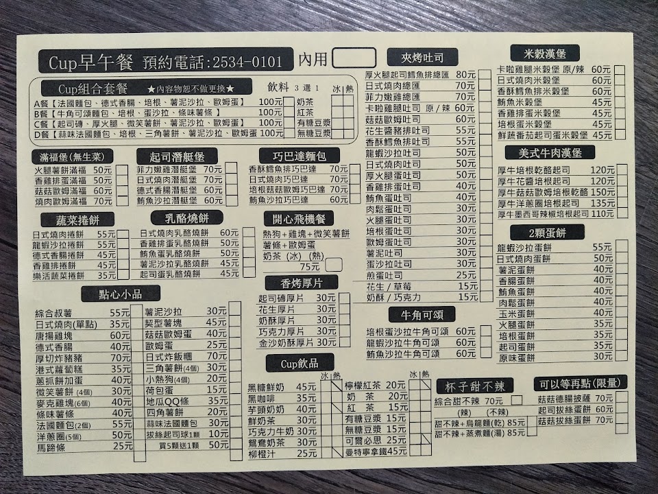每次必點套餐100元還附上一杯飲料(鮮豆漿或古早味紅茶)? …