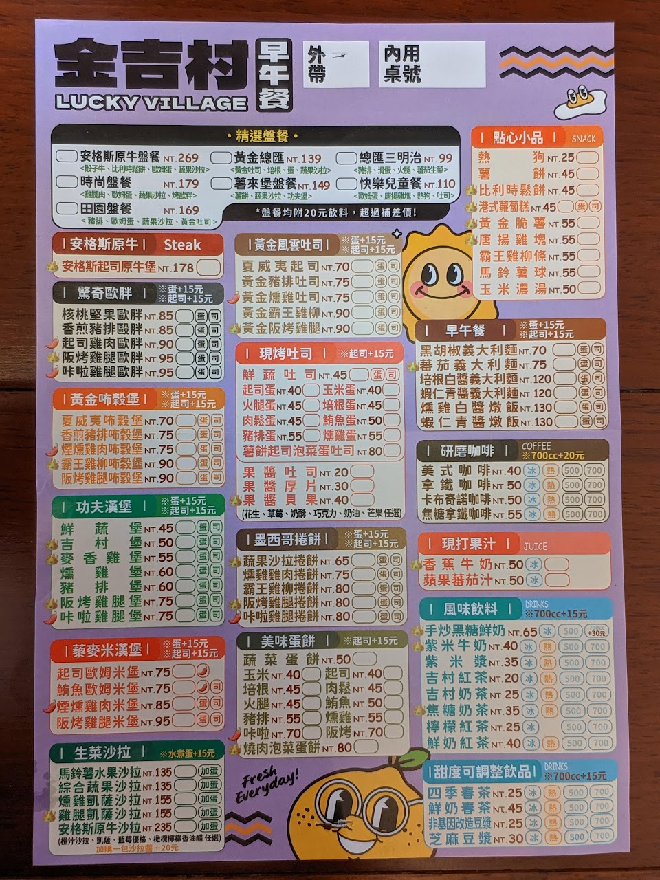 2024最新在地推薦餐廳的菜單_金吉村早午餐的菜單、圖片