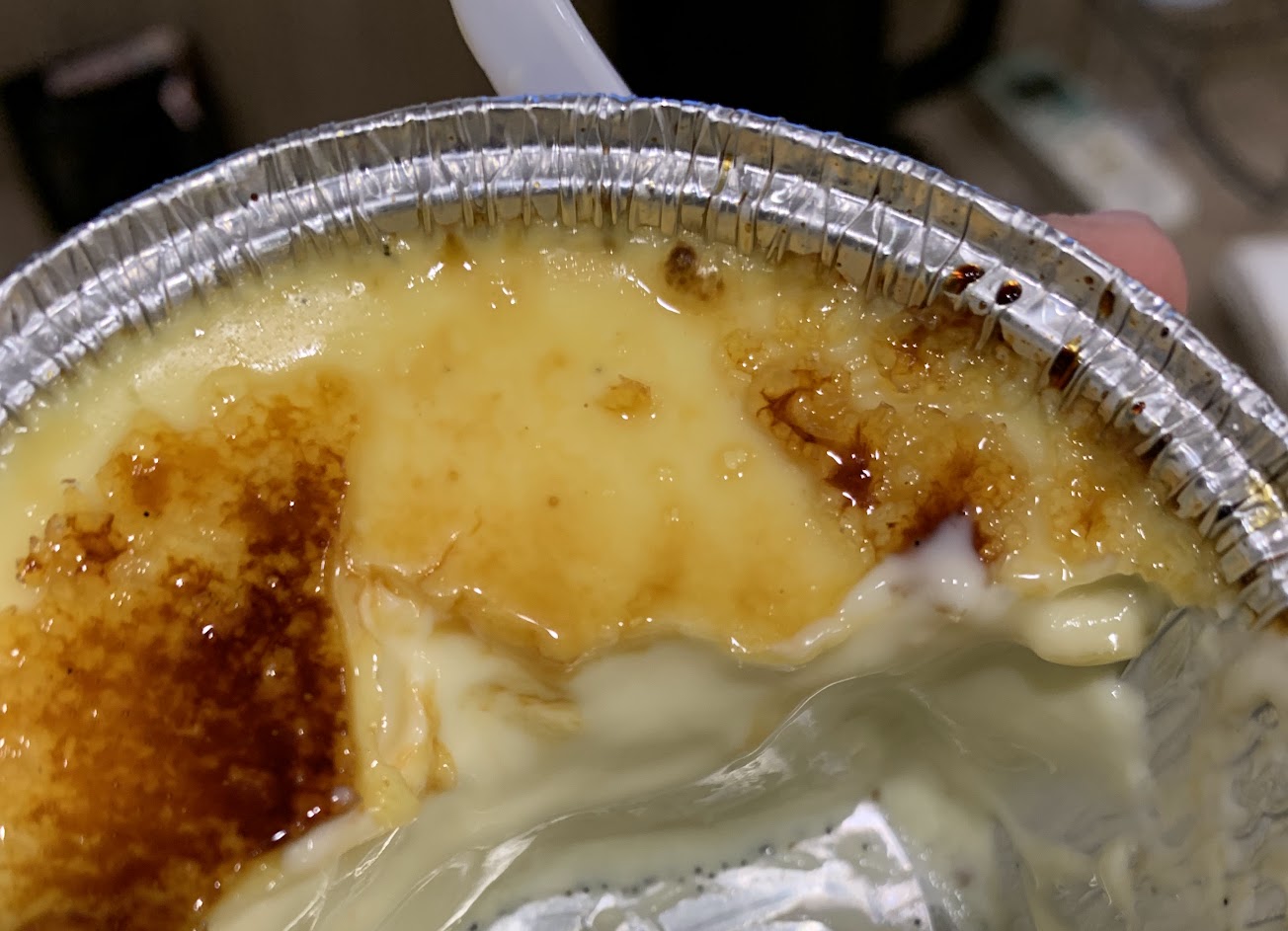 因應疫情,現在都是外帶。但外帶不影響烤布蕾的品質,布蕾本體香草香氣十足,甜而不膩,搭配焦糖脆脆的口感,和微微苦香,很好吃!