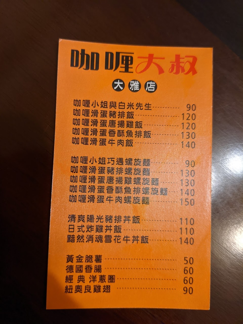 2024最新在地推薦餐廳的菜單_咖喱大叔 貳號店的菜單、圖片
