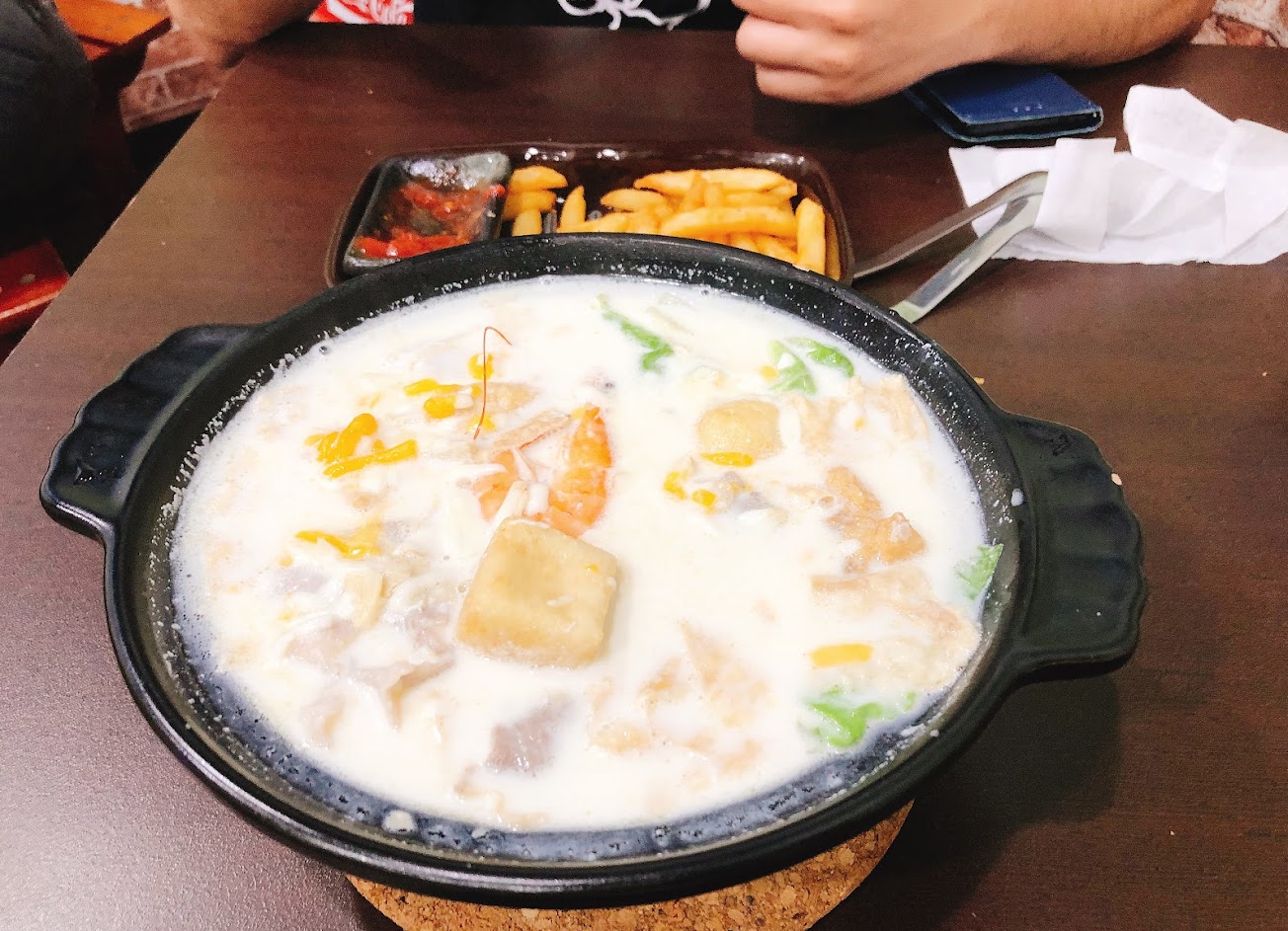 牛奶鍋還好,但泡菜和柚子醬是店家自己做的,泡菜酸味適中有入味,但不會太鹹,因此湯頭喝起來蠻舒服的,而柚子醬搭配唐揚雞,剛好解油膩,夾著洋蔥絲一起吃很清爽。