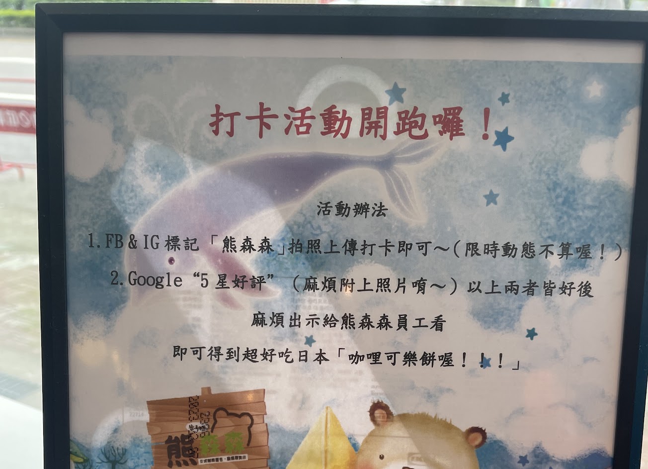 謝謝老闆獎勵100分小孩,現在有打卡送咖哩可樂餅的活動喔