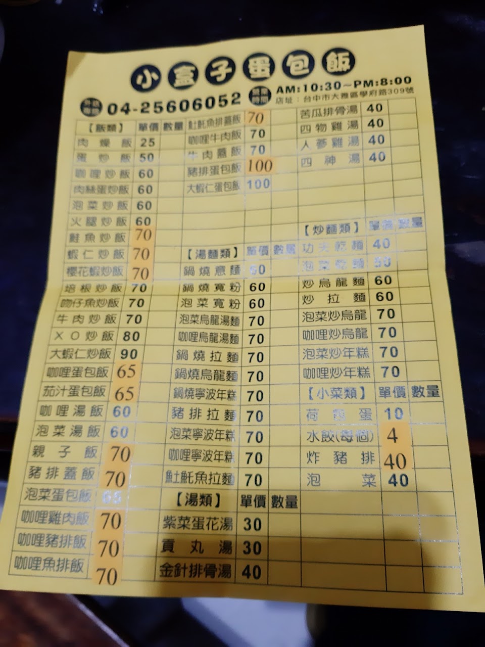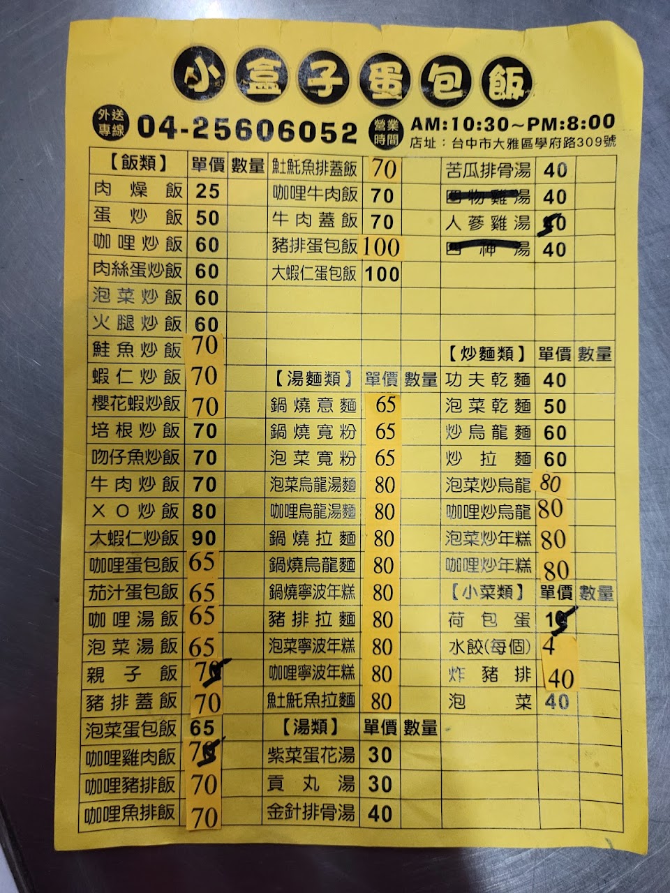 後續已是老闆與兒子正職掌廚。老闆娘負責確認餐點、結帳、外送。