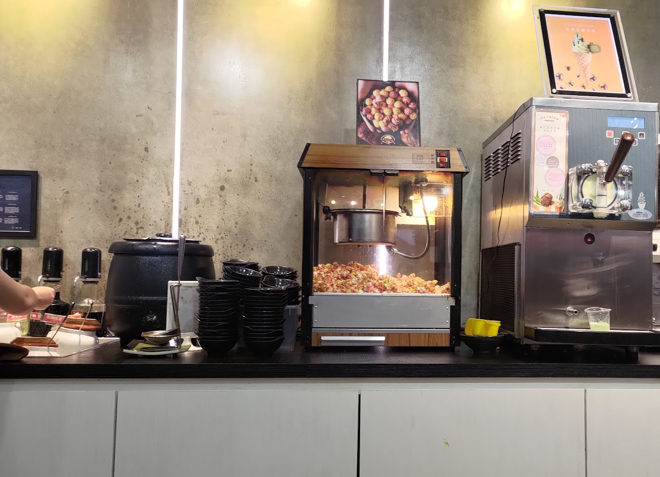 自助吧 有咖啡 冰淇淋 白飯 爆米花等等