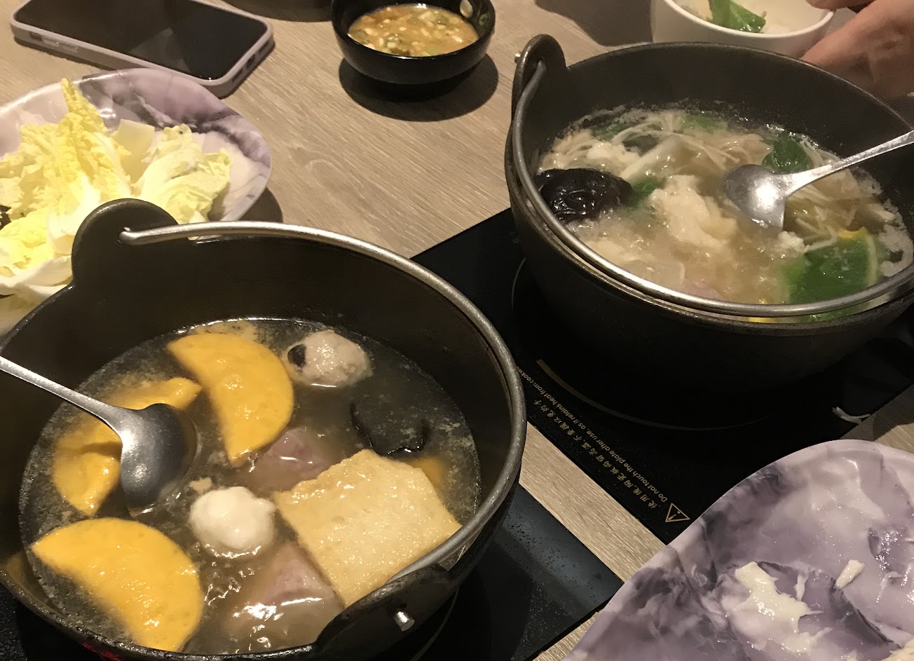 湯頭不錯,蔬菜自助的種類也很多,唯獨魚片味道太腥吃不太下去?