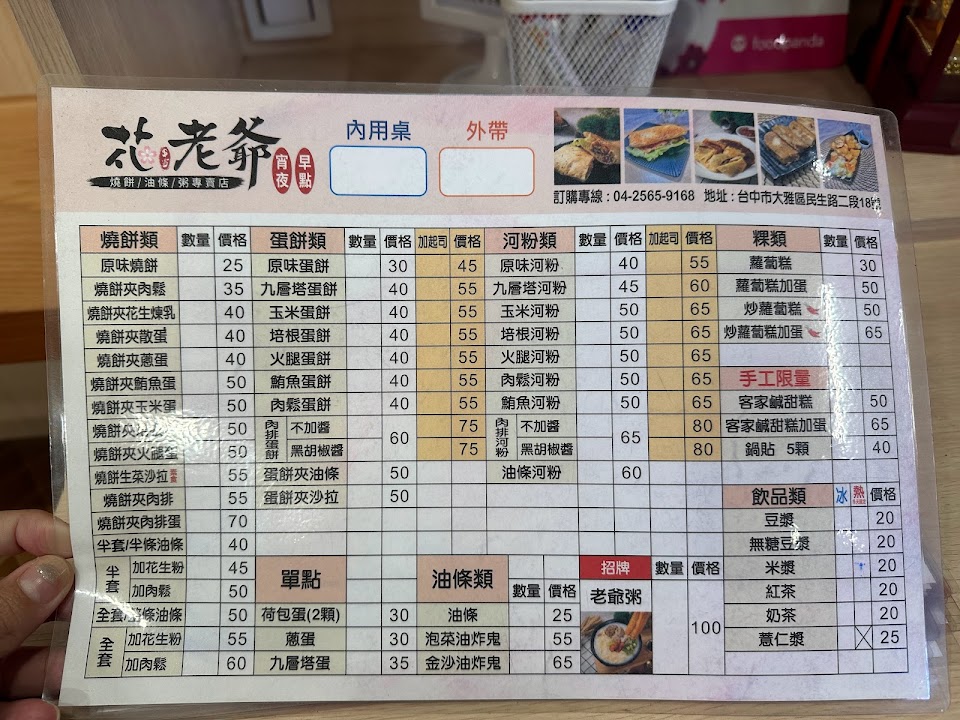 2024最新在地推薦餐廳的菜單_花老爺燒餅油條粥專賣店的菜單、圖片
