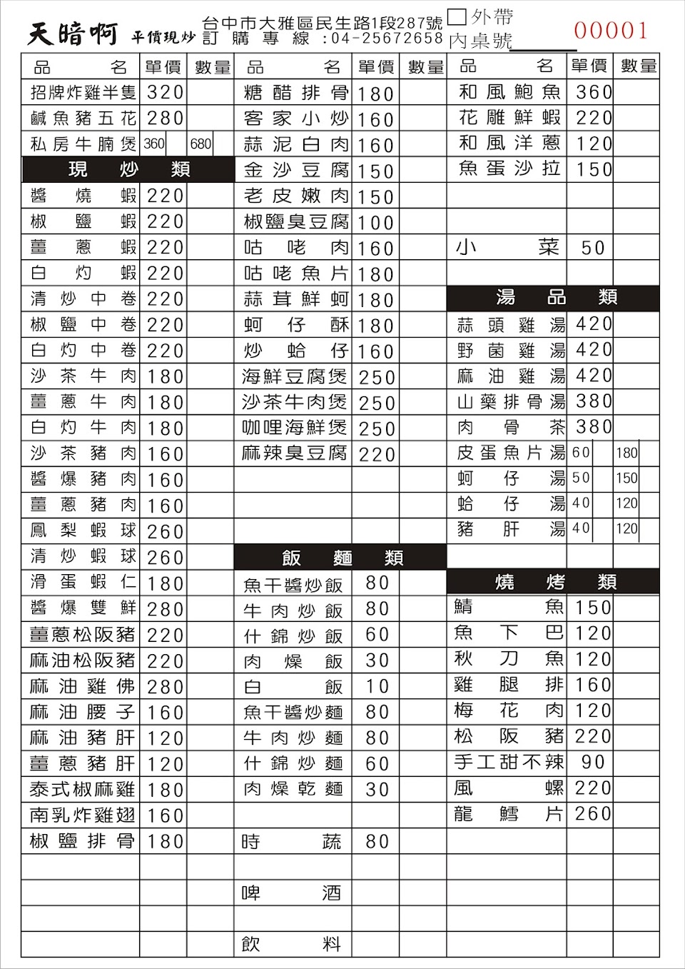 2024最新在地推薦餐廳的菜單_天暗啊平價現炒(晚餐宵夜)的菜單、圖片
