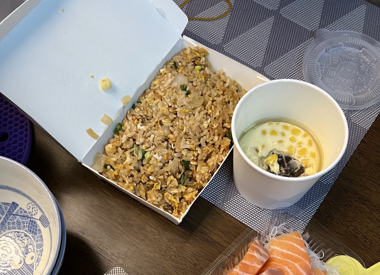 這個鮭魚炒飯(很台式)跟我國中自己炒飯炒出來的味道一模一樣!