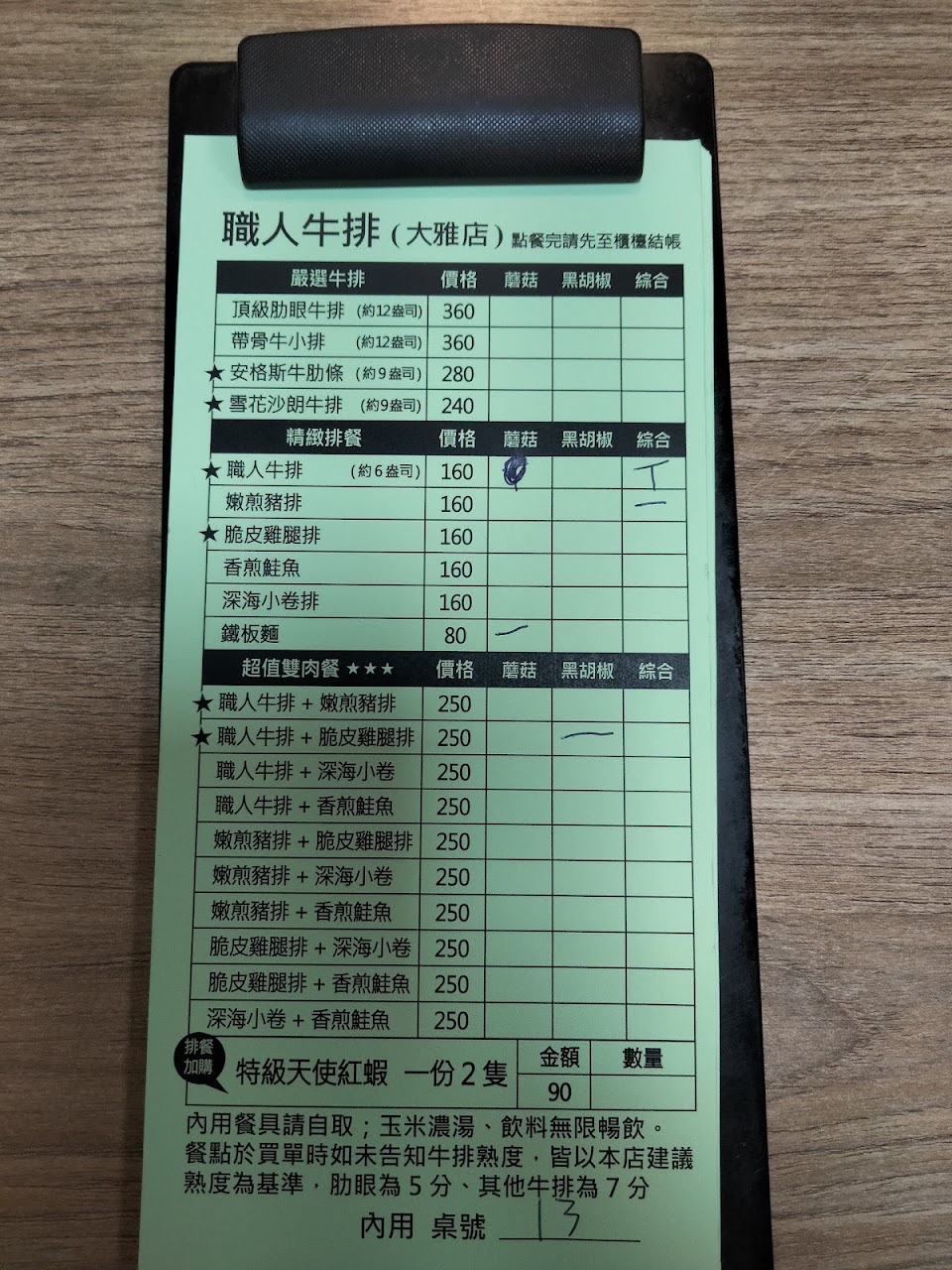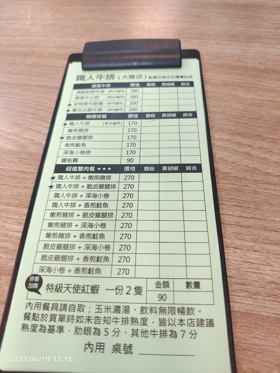 2024最新在地推薦餐廳的菜單_職人牛排大雅店的菜單、圖片