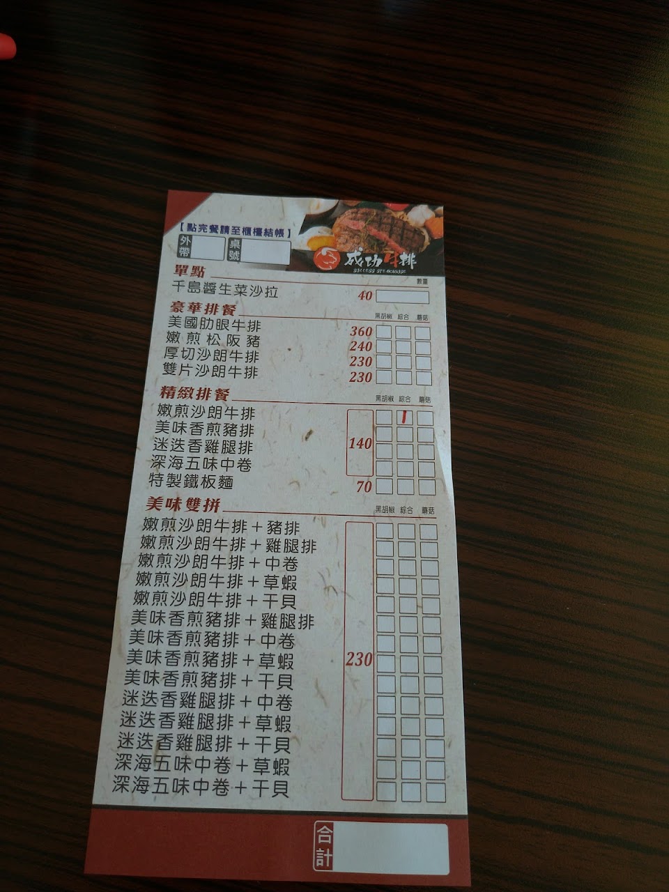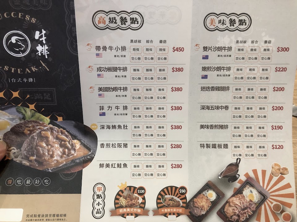 2024最新在地推薦餐廳的菜單_成功牛排的菜單、圖片