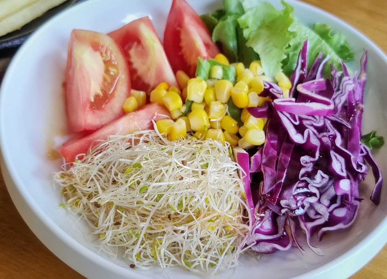1.生菜沙拉的高麗菜有點硬,如果再切細絲一點會更好,冰淇淋有味道但有點淡