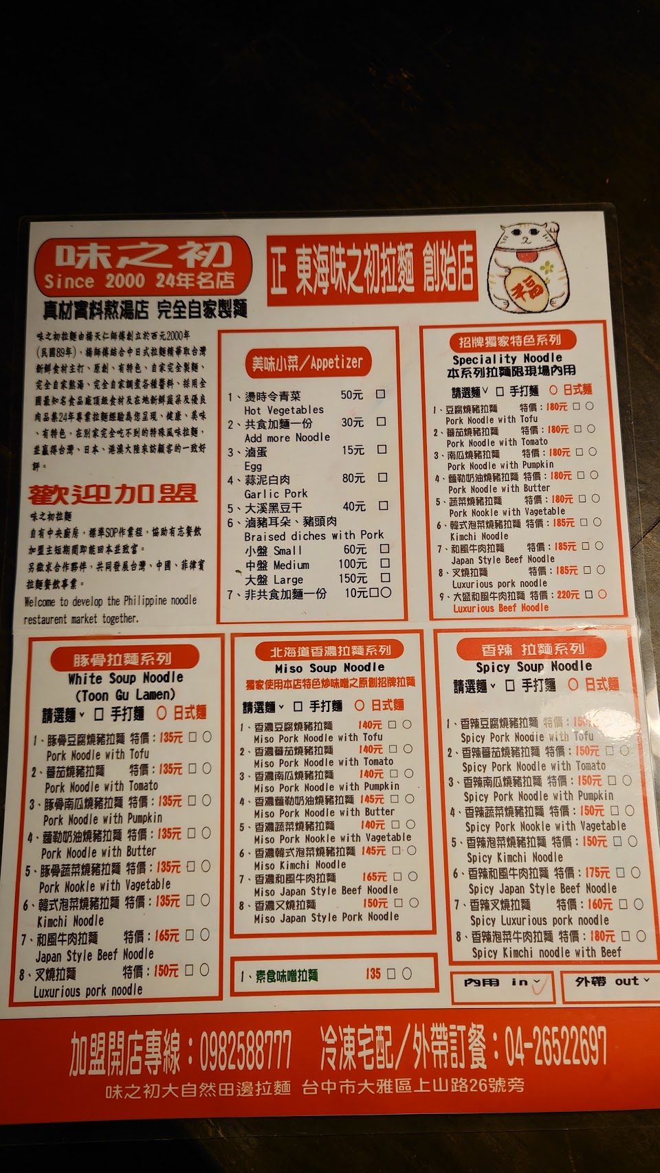 2024最新在地推薦餐廳的菜單_味之初 台灣原創拉麵的菜單、圖片