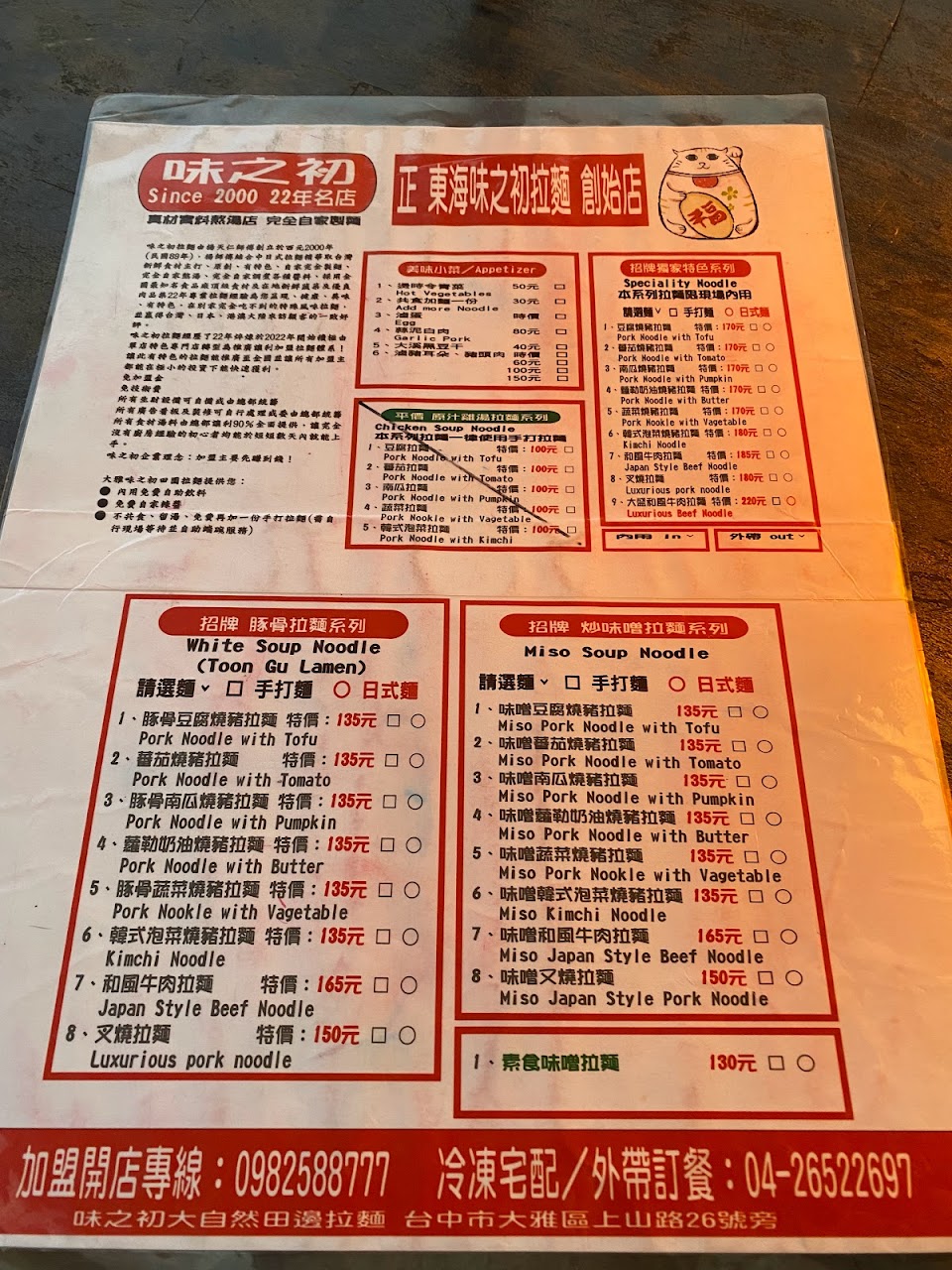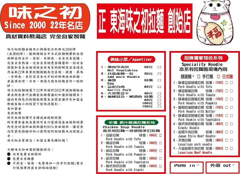 2024最新在地推薦餐廳的菜單_味之初 台灣原創拉麵的菜單、圖片