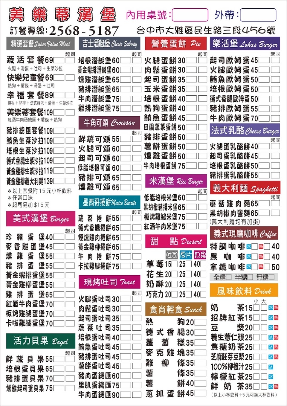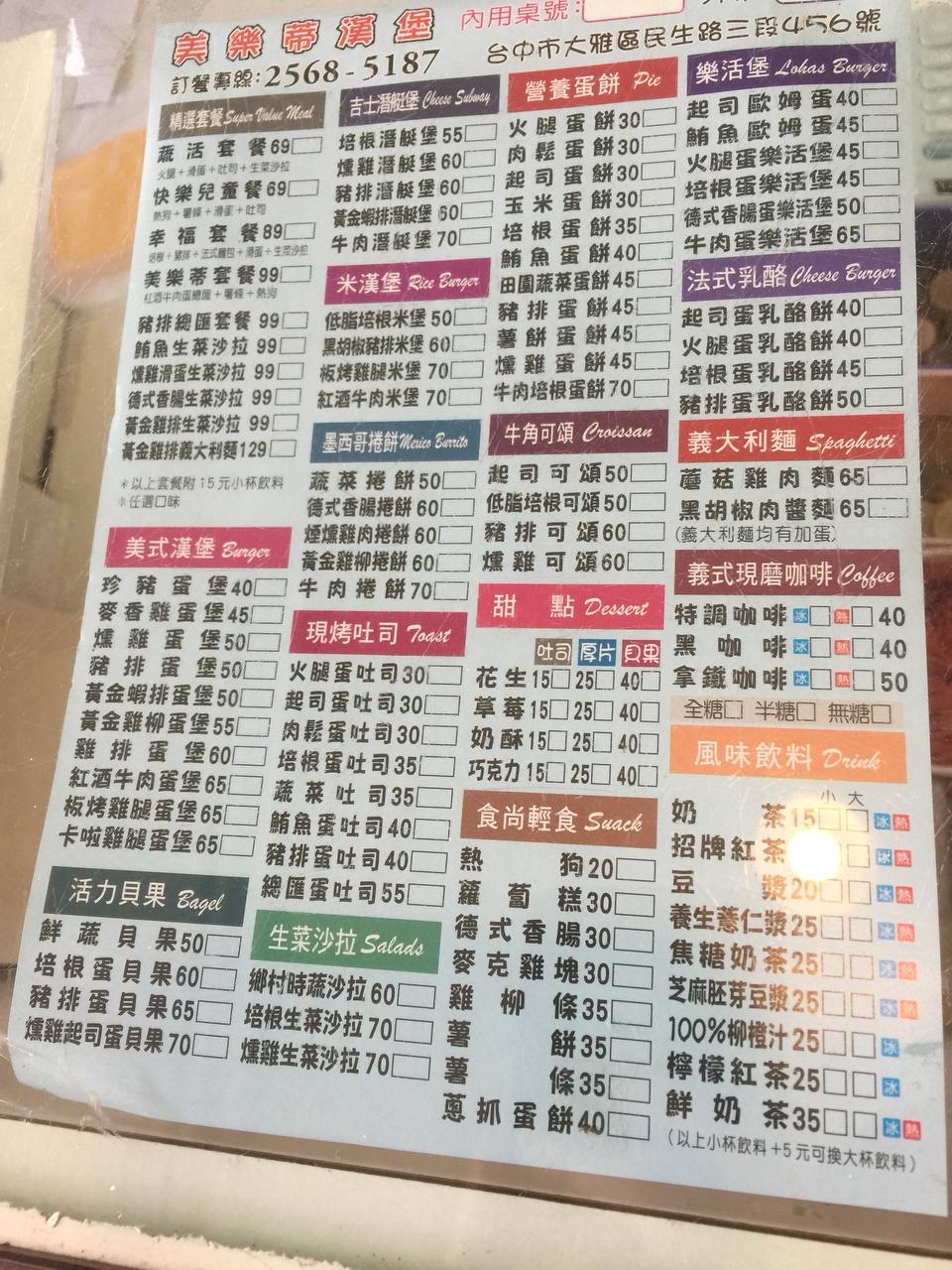 2024最新在地推薦餐廳的菜單_美樂蒂漢堡的菜單、圖片