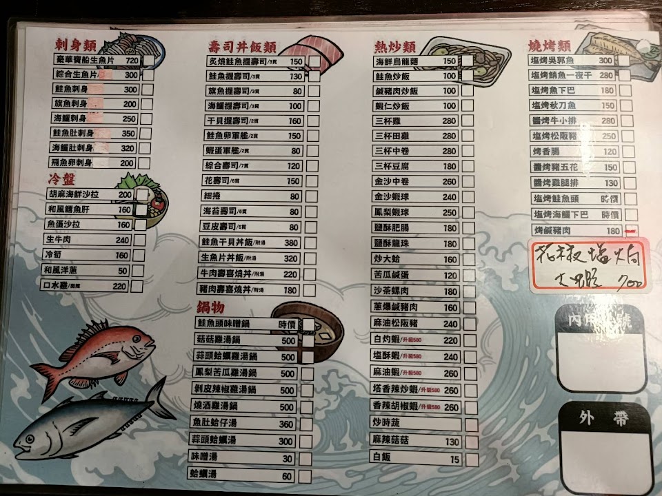 真的是CP值超高的店,吃到一半才想到要照相,有些已經嗑完了下桌了,只有海鱺魚下巴是完整的,烤下巴還被叫去確認價格,因爲很大約11兩才收330,當然越大越好吃,而且入口驚艷,店家是用新鮮的魚下巴,好吃但太大吃不完,生魚片也很讚!其他料理也很棒,值得再去研究其他料理,還有荔枝燒啤很讚!