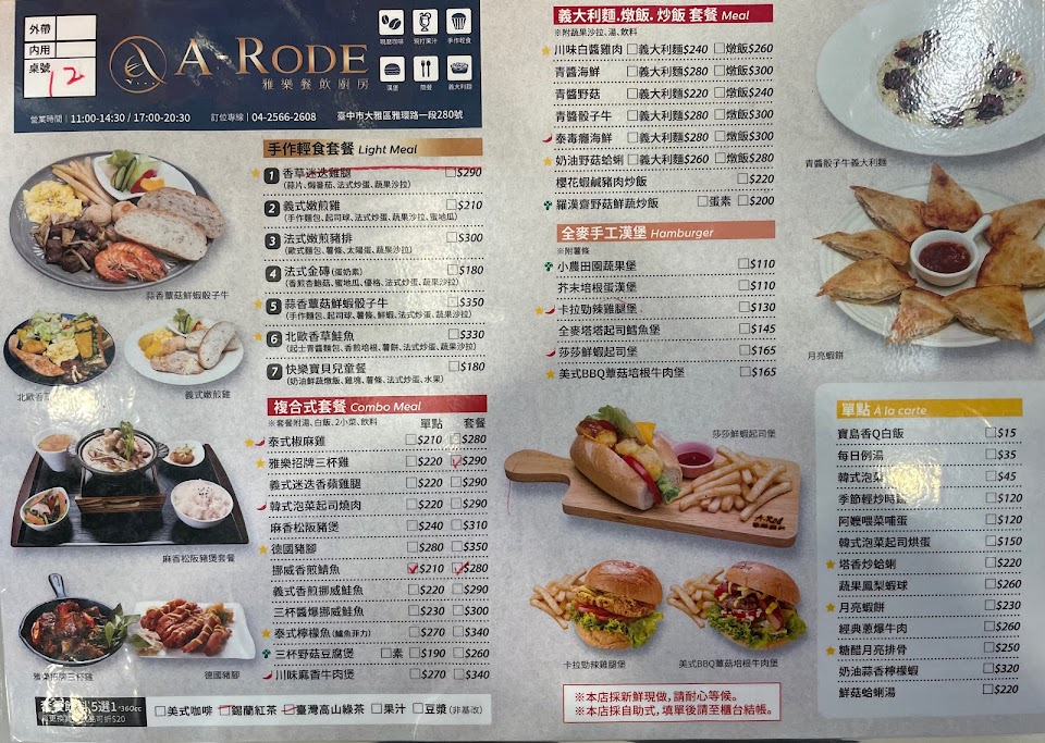 2024最新在地推薦餐廳的菜單_A-Rode雅樂餐飲廚房-主廚料理•簡餐•輕食•咖啡•義大利麵的菜單、圖片