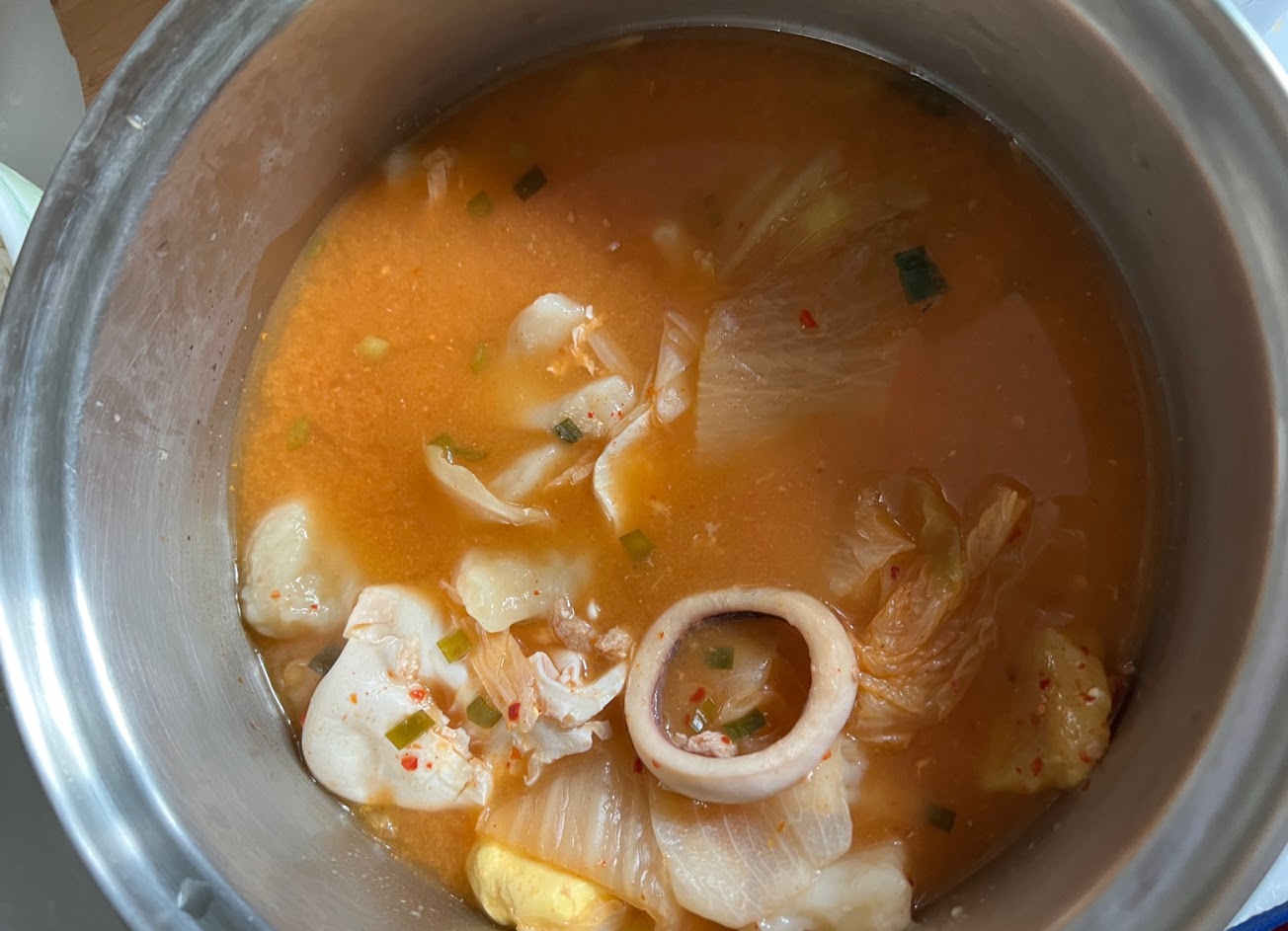 泡菜海鮮麵疙瘩 湯頭還不錯、麵疙瘩也很Q彈,就是蝦子不太新鮮