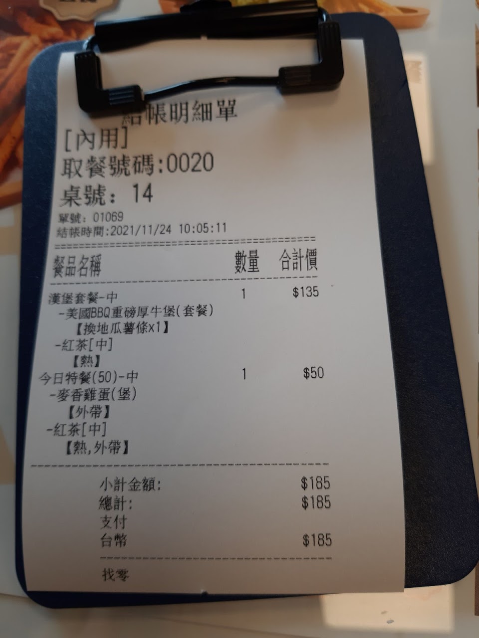 餐點:1
