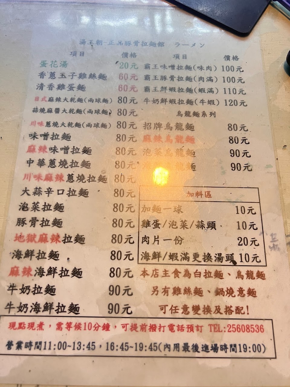 2024最新在地推薦餐廳的菜單_湯王朝拉麵的菜單、圖片
