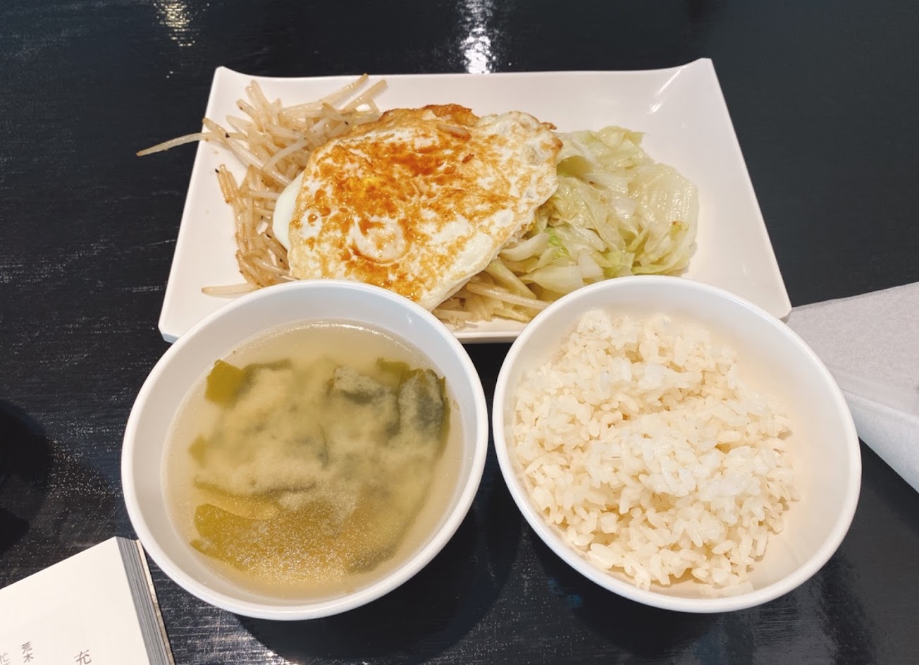 超好吃,蔬菜有滿滿的奶油香,整體不油膩很爽口味道又不會太淡。味噌湯的味噌跟柴魚味超香。白飯有點可惜,跟其他超好吃的菜比起來算是普通的白飯。湯跟白飯還有無糖麥茶都是免費續的。九層塔蛋也非常美味,整個食材吃起來就很新鮮的感覺。
