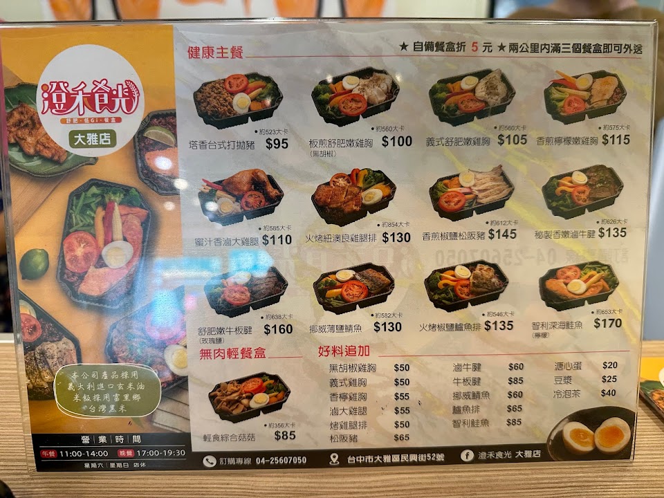 2024最新在地推薦餐廳的菜單_澄禾食光 低GI健康餐(大雅店)的菜單、圖片