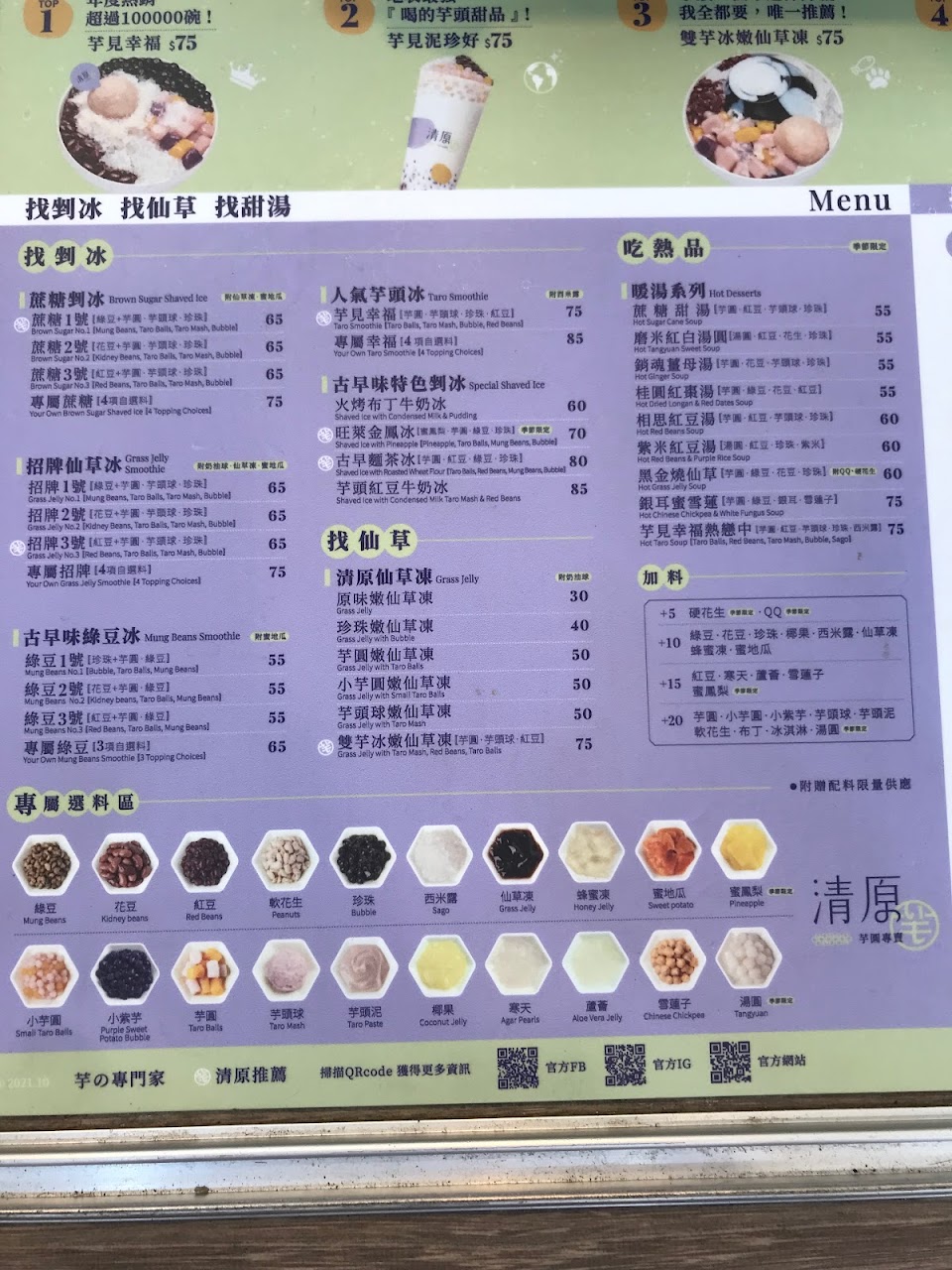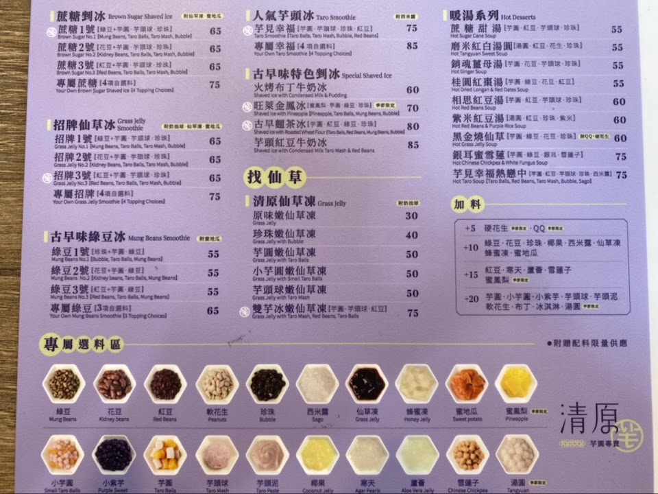 2024最新在地推薦餐廳的菜單_清原芋圓 台中大雅店(飲料自取買五送一)的菜單、圖片