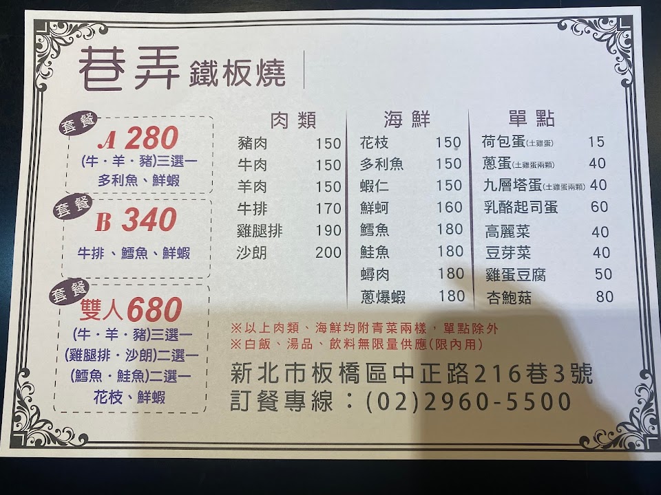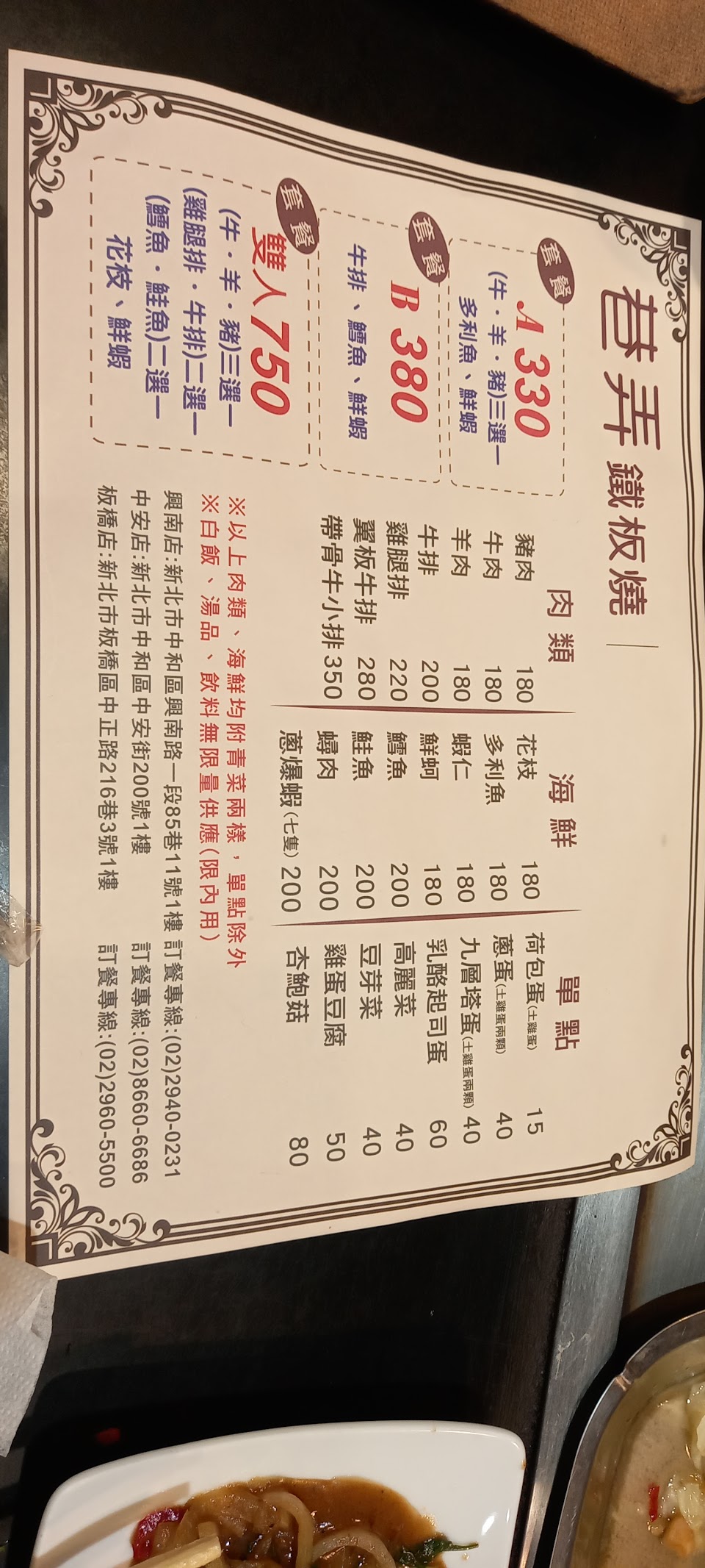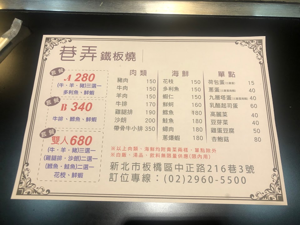 2024最新在地推薦餐廳的菜單_巷弄鐵板燒板橋店的菜單、圖片