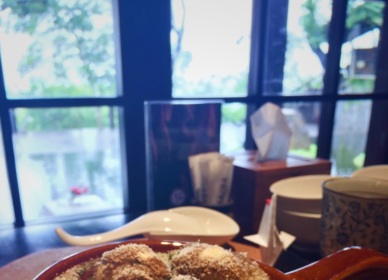 非常漂亮的地方!!!感覺很適合穿漢服或和服來拍照哈哈哈,下午茶三點才可以進去,有停車場可以先去之後先排隊,進去之後有空桌都可以自己挑位子!不過是無菜單料理,下午茶可以選飲料,依稀記得有水果茶、花草茶和桑葚汁……?水果茶好像只有冰的,可以去冰;茶葉泡的茶都可以不斷回沖。今天的下午茶吃的是有點類似三明治之類的東西?麵包有很多黑芝麻很香!!還有生火腿,不會太鹹,好吃。旁邊有兩塊千層蛋糕就沒有那麼好評,最左邊是一碗摩摩渣渣之類的東西,裡面有很多水果,還有一顆荔枝裡面包鳳梨(!)神奇的吃法,但是好吃。水果茶裡面也很多水果,我沒有去冰所以覺得不會很甜,同樣好評。