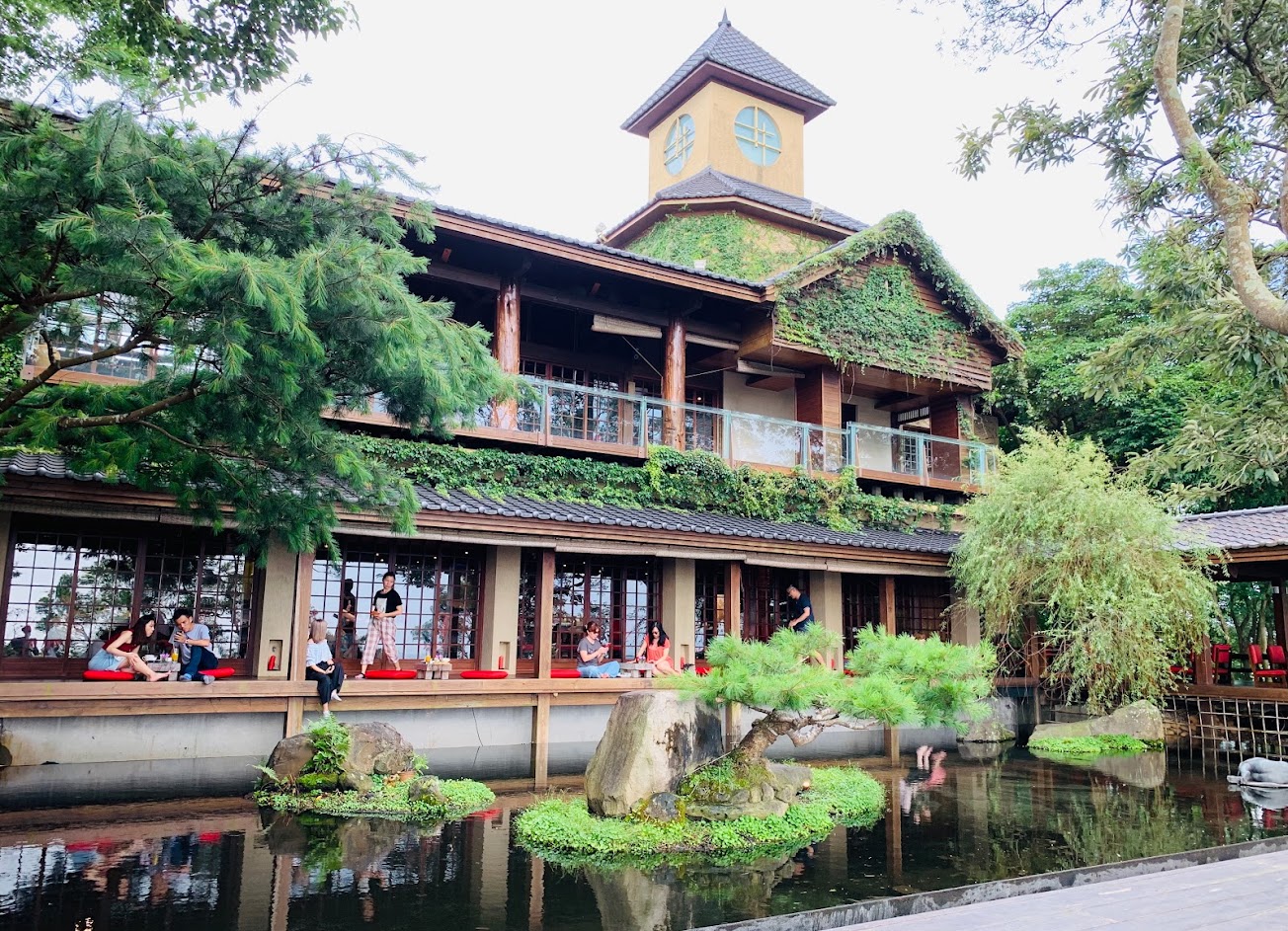 新社最美的仙境~又見ㄧ炊煙 ,綠意盎然的日式庭園。仿唐古建築的典雅寫意禪風,到訪過的人,無不沈醉其間忘卻塵囂紛擾。迴廊間ㄧ方低闊池水如鏡,倒映藍天、浮雲、蒼松與自己的影兒….禪意景緻,美不勝收,彷彿將日本嵐山磋峨野的山水靈秀挪移過來?