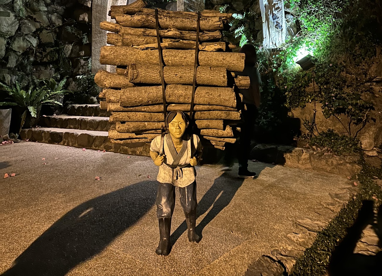 一入眼的一個背負著一大捆木材的小女孩藝術創作,讓我想到「歲月靜好,負重前行」。生活就是如此!